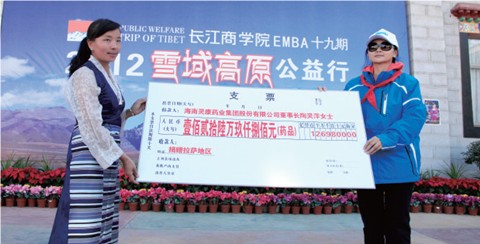 2012年10月13日,陶靈萍董事長(zhǎng)參加了由長(zhǎng)江商學(xué)院第十九期EMBA班學(xué)員——最高人民檢察院公訴廳副廳長(zhǎng)、西藏自治區(qū)人民檢察院副檢察長(zhǎng)侯亞輝倡導(dǎo)的“雪域高原公益行”活動(dòng)。陶靈萍董事長(zhǎng)在西藏拉薩市城關(guān)區(qū)吉崩崗小學(xué)的捐贈(zèng)活動(dòng)上,代表靈康藥業(yè)集團(tuán)分別向西藏拉薩、山南和林芝地區(qū)捐贈(zèng)了價(jià)值127萬(wàn)元、100萬(wàn)元、100萬(wàn)元的藥品,其中包括注射用炎琥寧、注射用頭孢唑肟鈉等,合計(jì)價(jià)值327萬(wàn)元。