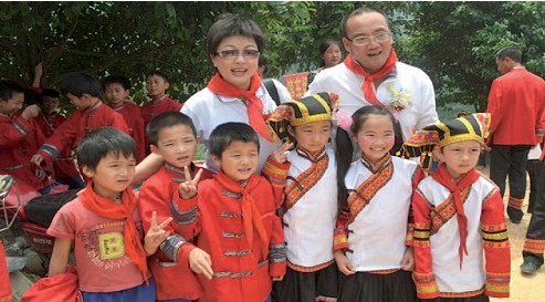陶靈萍董事長(zhǎng)與邊區(qū)孩子們合影(后排左一為陶靈萍董事長(zhǎng))